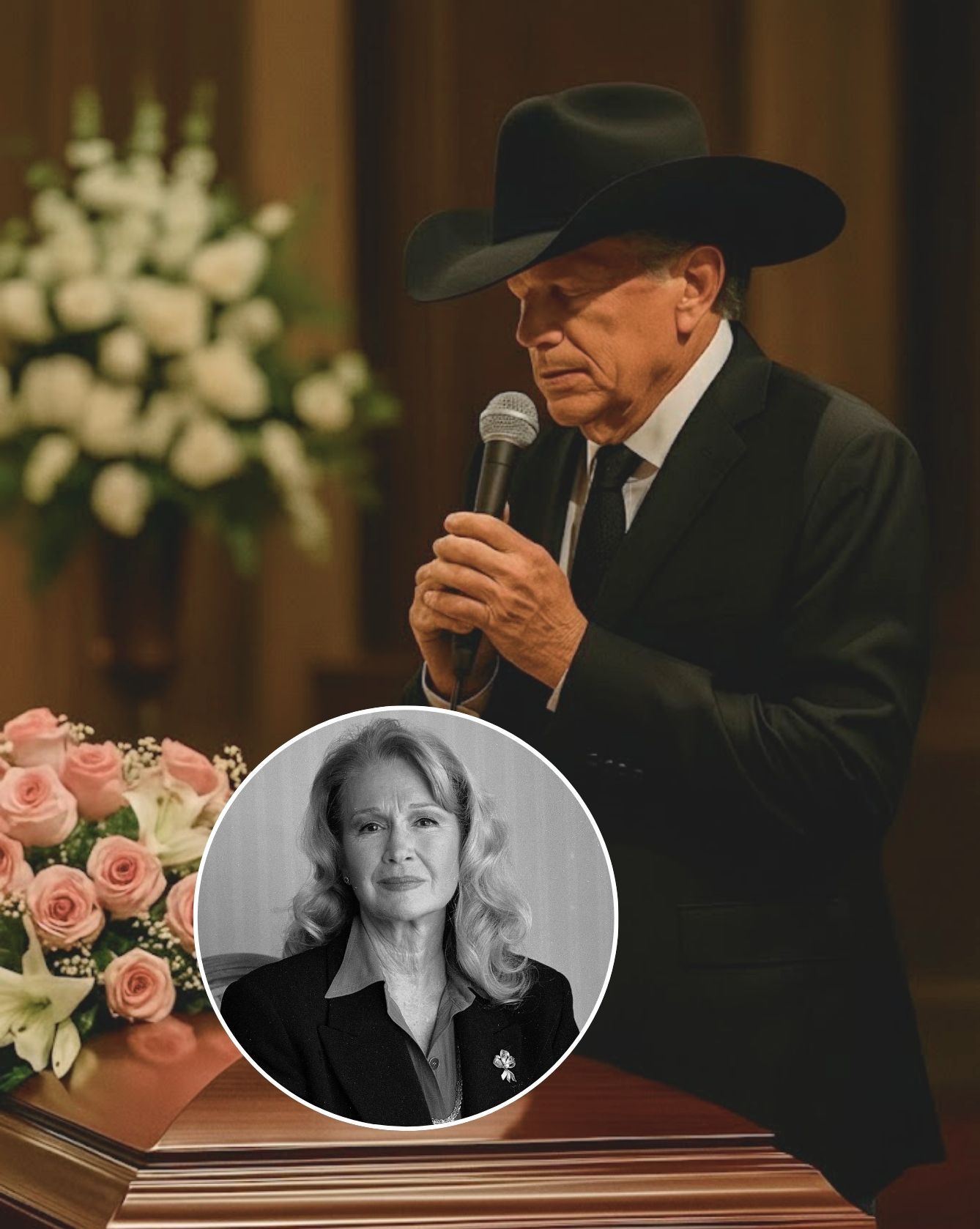 Across the rows, mourners held hands. Laura Dern, Diane’s daughter, clutched a handkerchief to her face, weeping softly as George’s voice — deep and raw — carried through the air. There was something sacred in the sound, as though two worlds had touched: Hollywood’s golden heart and country music’s pure soul.