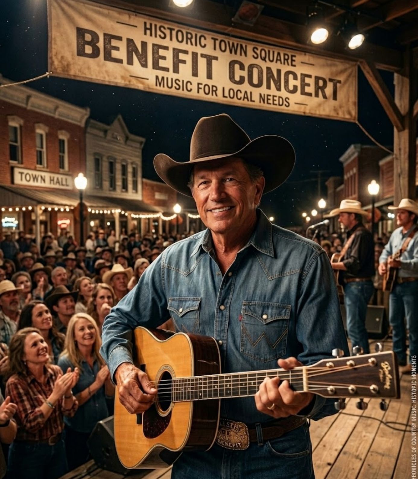 There are evenings that begin with simple intentions and somehow become the kind of memories people carry for the rest of their lives. What was meant to be a modest small-town benefit concert in the heart of Texas became exactly that when George Strait made an unexpected appearance that transformed an ordinary night into a truly historic country music moment.