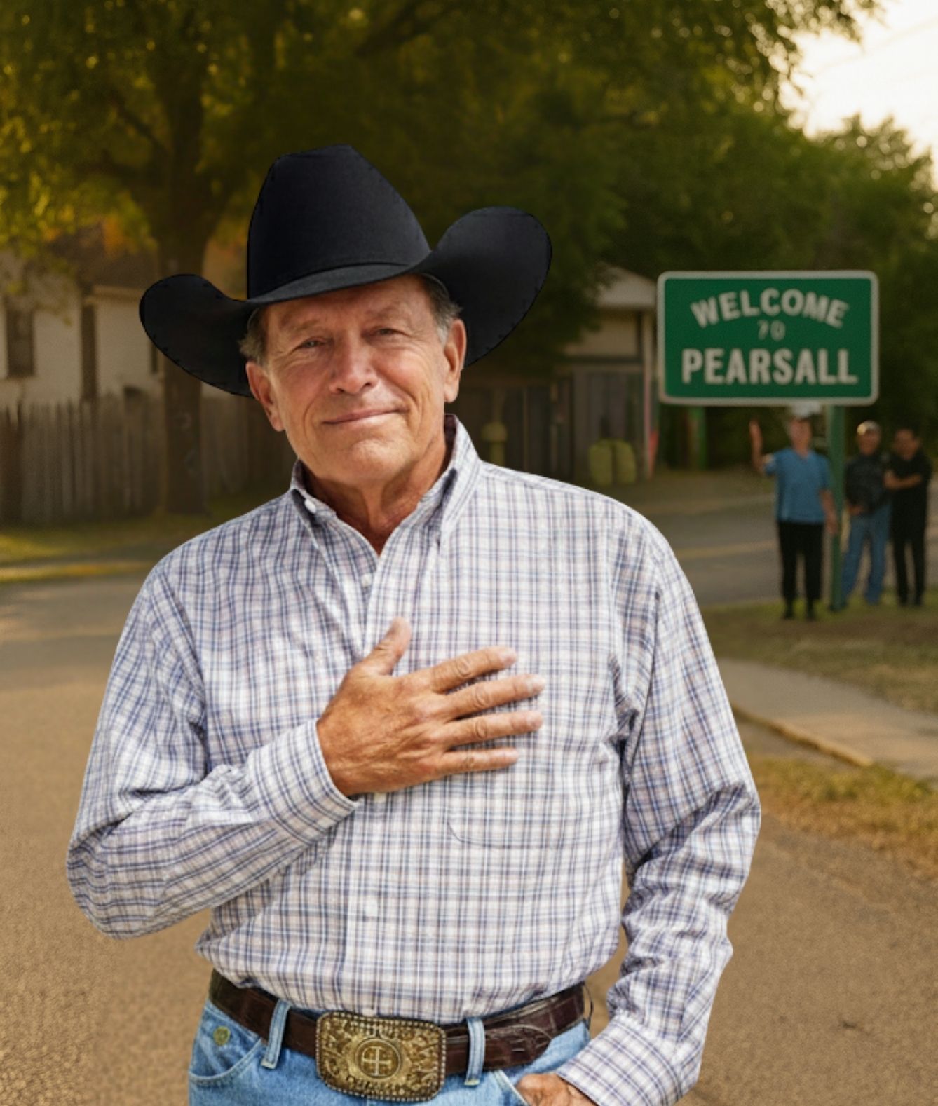 Later that evening, as the sun dipped behind the Texas hills, the people of Pearsall gathered in the town square. Without a microphone, without a stage, George began to sing a few lines of “Troubadour.” The crowd joined in softly, and by the final chorus, even George couldn’t hold back his tears.