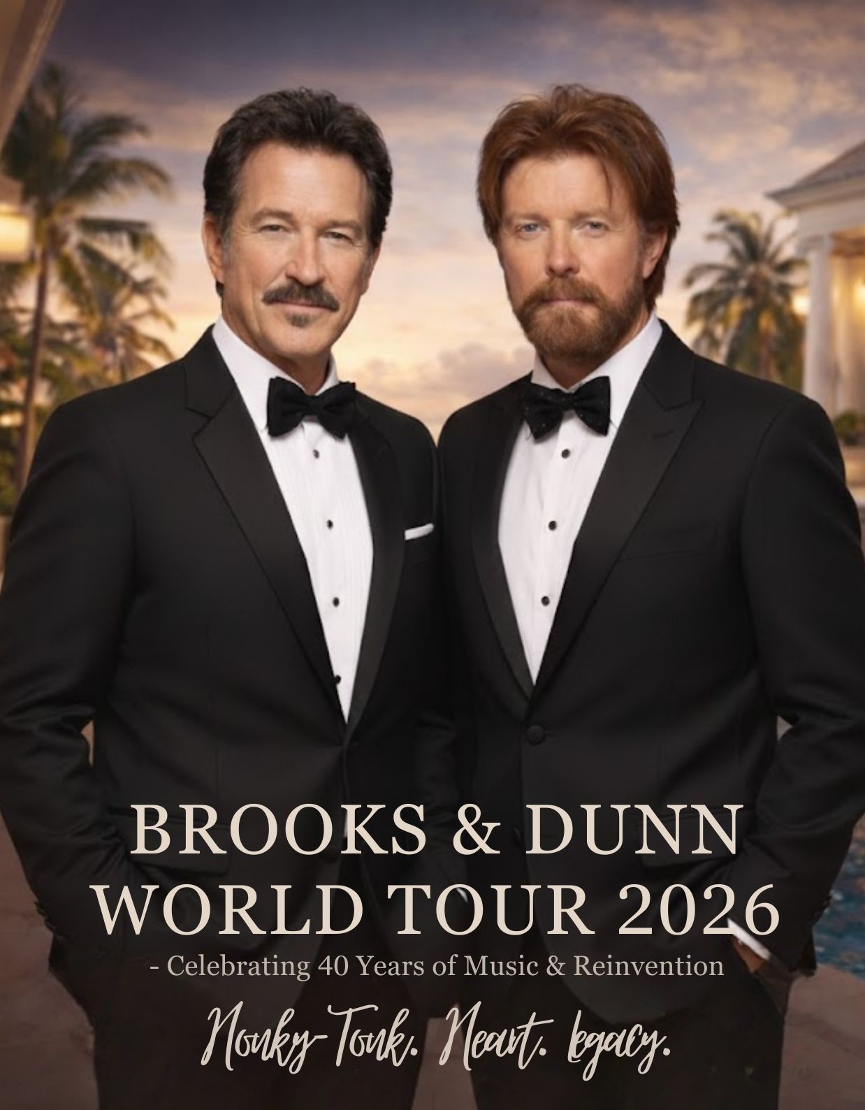 In Nashville, Tennessee, where country music has always known how to tell the truth, a quiet announcement has begun to echo around the world. Brooks & Dunn, two names forever woven into the fabric of American music, have officially unveiled their 2026 World Tour — a moment that carries far more weight than dates and destinations.