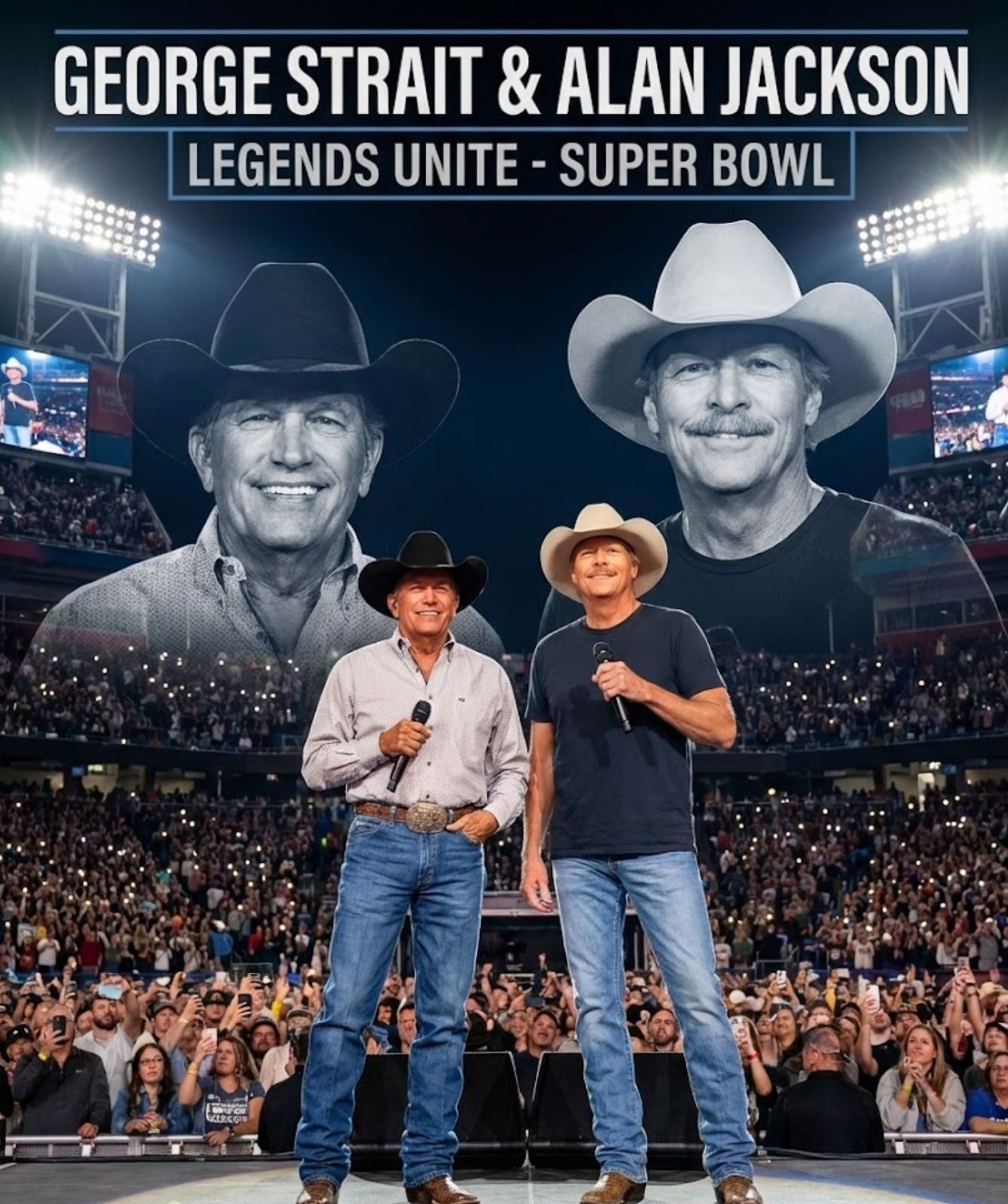 THE KINGS UNITE AT LAST — WHEN GEORGE STRAIT AND ALAN JACKSON STEP INTO THE SUPER BOWL SPOTLIGHT, AND COUNTRY MUSIC STANDS TALL AGAIN